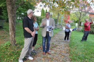 Der Besuch begann mit einem  Empfang im Rathaus von Kusterdingen, wo sie von Dr. Jürgen Soltau begrüßt wurden. Mit dabei Hans Kern und Manuel Mozer vom Geschichtsverein Härten sowie eine Reporterin vom Reutlinger Generalanzeiger, der bereits im Vorfeld freundlicherweise über den Besuch berichtet hatte. Nach einem intensiven Austausch von Informationen und dem Eintrag in das “Goldene Buch” verabschiedeten wir uns von Herr Dr. Soltau und fuhren weiter in den Klosterhof.
